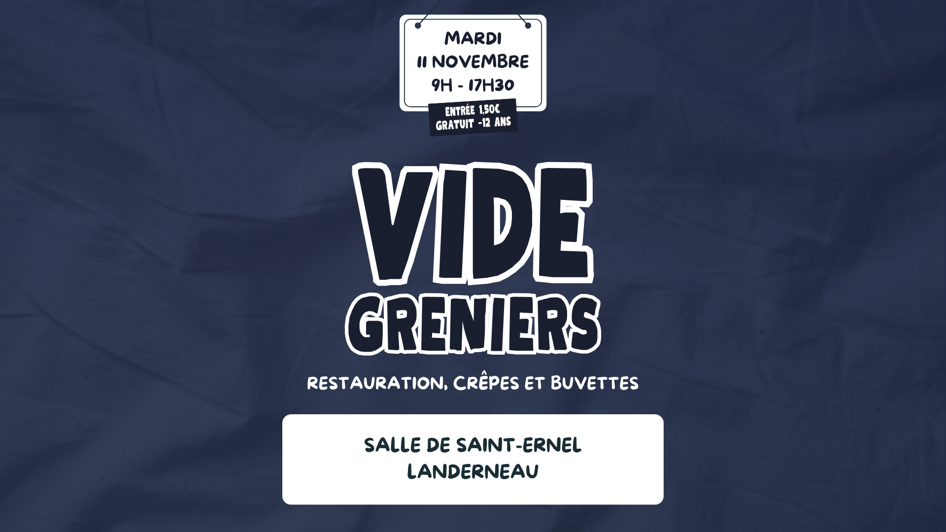 Comme chaque année, le Landerneau Football Club organise son traditionnel vide-greniers, rendez-vous le 11 novembre à Saint-Ernel.